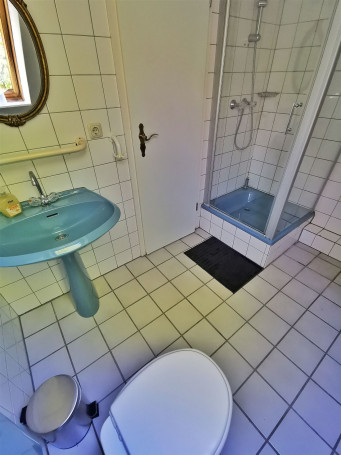 Die Ferienwohnung Aron hat ein separates Doppelbett-Schlafzimmer, einen offenen Wohn- Eßbereich mit Flur und ein Duschbad. Im hellen, freundlichen Wohn-Essbereich mit Sichtbalken kann man es sich am großen Eßisch in Ledersesseln gemütlich machen. In dem offenen Flurbereich ist eine Garderobe vorhanden.