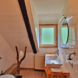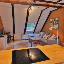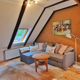 Fölvi ist eine geräumige, im gemütlichem Landhausstil eingerichtete 4-Zimmer-Ferienwohnung. Die Fölvi liegt im Dachgeschoss mit Zugang über eine große Dachterrasse. Die Sichtbalken an den Dachschrägen bieten einen ganz eigenen Scharm. Fölvi liegt im "Schiemannhaus", das den Reit- und Stallanlagen am nächsten ist.