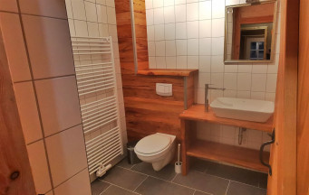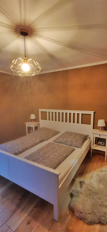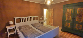 Abgeschlossenes Schlafzimmer mit Doppelbett (2x 90ger Matratze) und altem Bauernschrank