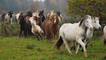 Zum letzten Mal in diesem Jahr wurden die Islandstuten mit den Fohlen und die Islandhengste auf neue Weideflächen getrieben. Danach beginnt die Winterhaltung. Alle Pferde sind sehr gut durch die Weidesaison gekommen.