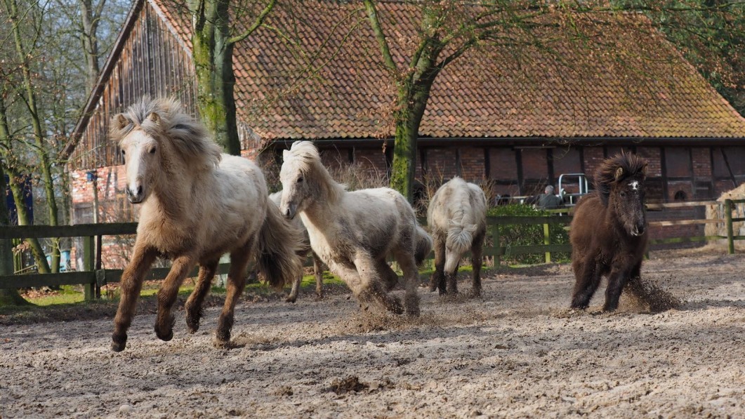 Die Sonne scheint - und unsere Islandfohlen können außer den bekannten fünf Gangarten auch die sechste. Bei schönem Frühjahreswetter zeigen sich die jungen Islandpferde voller Lebensfreude in ihren natürlichen Gangarten und es wird außerdem gebuckelt und gehopst, getobt, gerauft und man sieht, dass die kleinen Isifohlen den Tag genießen.
