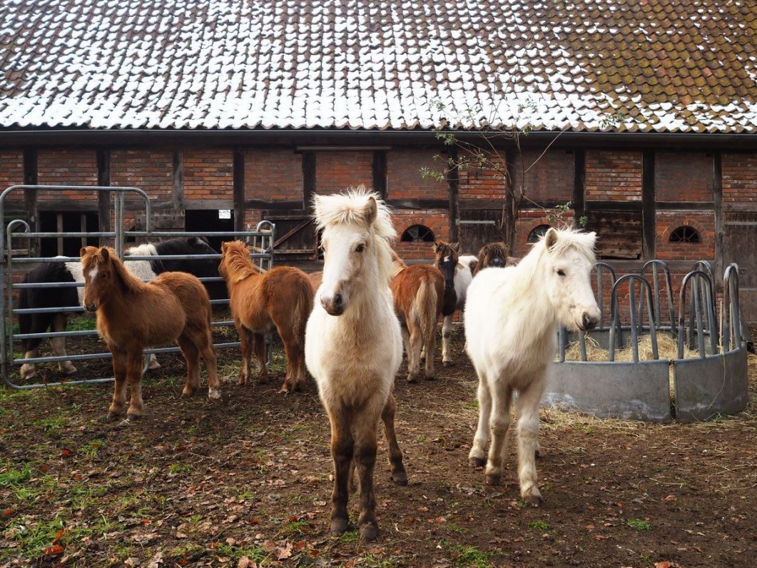 In ihrem ersten Winter bekommen die Fohlen morgens und abends Kraftfutter, Silage soviel sie mögen und wachsen so kontrolliert und mit Witterungsschutz auf. Im kommenden Frühjahr werden wir die Fohlen nach Geschlechtern trennen und in die jeweiligen Herden integrieren, wenn es wieder hinaus auf die Weiden geht.