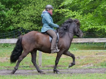 Hriki von Rutenmühle wurde am 20.06.2014 geboren. Er ist ein Naturtölter mit stolzer Haltung und zeigt das auch schon im Freilauf. Inzwischen ist Hriki eingeritten und erweist sich als ausgesprochen bequemer, braver, naturtöltender Isländer der in schöner Haltung mit Raumgriff erschütterungslos über Stock und Stein geht. Er hat einen sehr bequemen Kantergalopp.